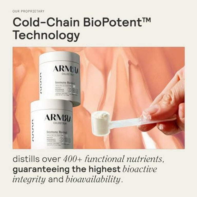 ARMRA's initial product, "Immune Revival," was a powdered bovine colostrum concentrate launched in 2021. The company claimed its proprietary cold-chain processing method—branded as "Cold-Chain BioPotent™ Technology"—preserved over 400 bioactive compounds that would otherwise be damaged by conventional heat processing. This scientific approach differentiated ARMRA from competitors and justified its premium pricing (approximately $2 per serving, significantly higher than generic colostrum supplements).