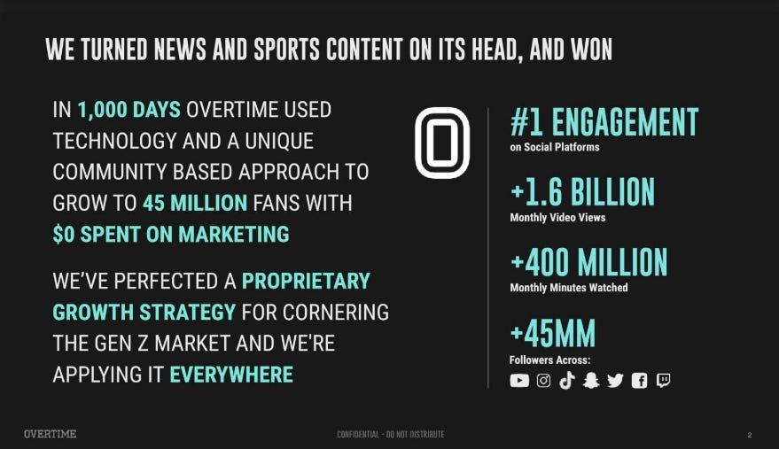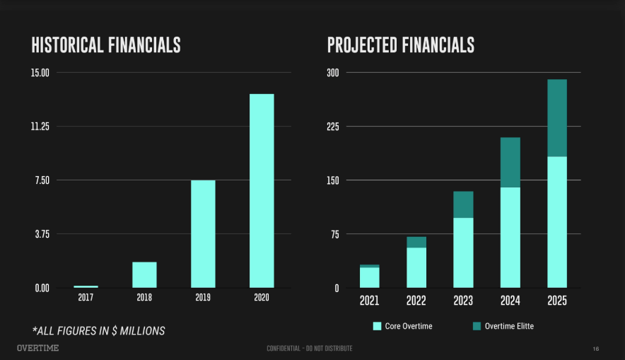 Doanh thu dự kiến: Overtime dự định sẽ đạt mức doanh thu 200 triệu USD vào năm 2024, tăng trưởng mạnh mẽ so với mức dưới 15 triệu USD năm 2020.