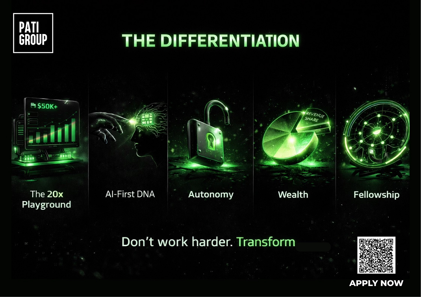 Lifetime Network: Even if you leave PATI, you remain a Vault Alumni (connections, referrals, collaborations). Most people spend their careers trying to find their tribe. We are handing you 14 of them on Day 1.