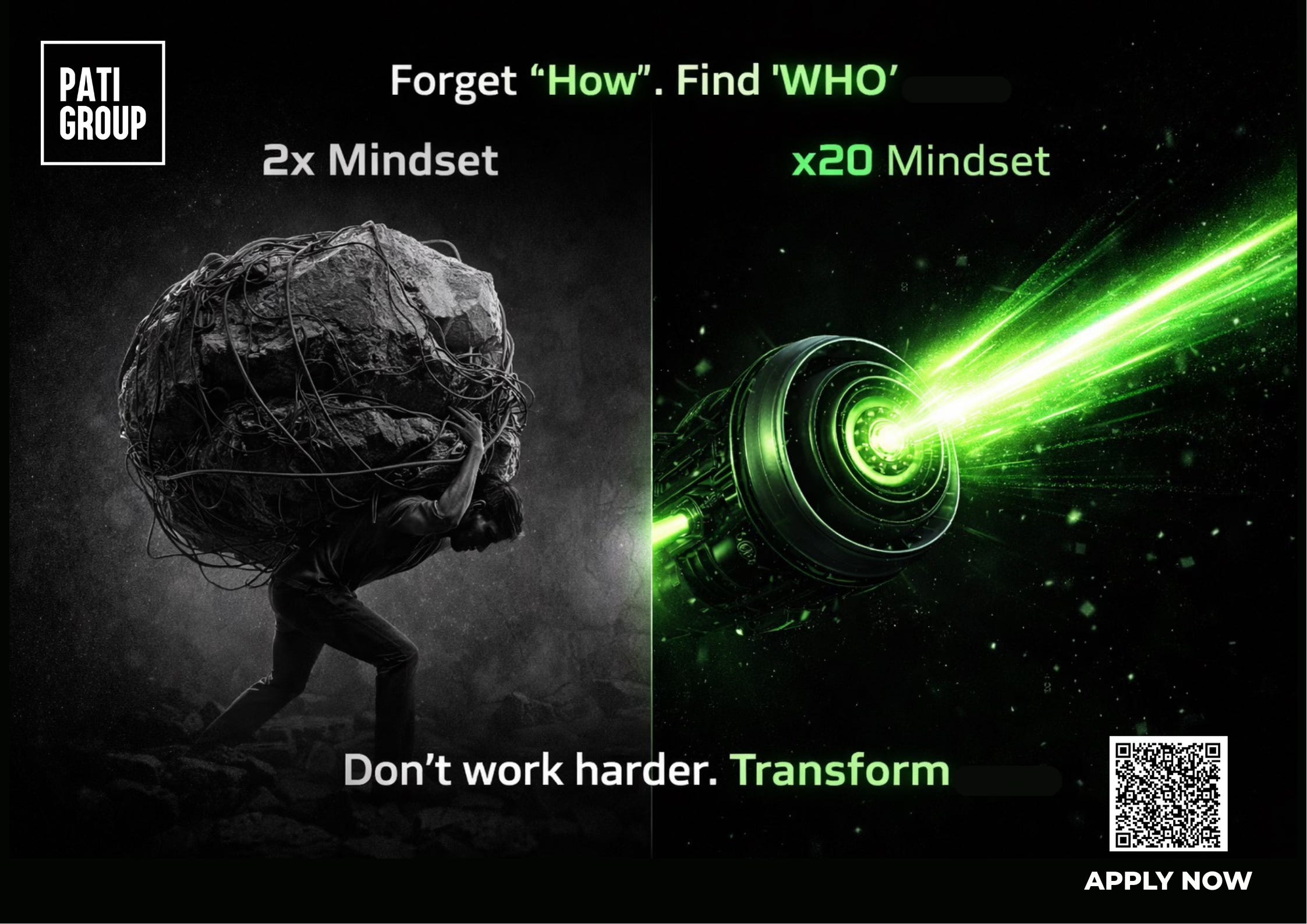 PATI is not a perfect machine yet. We have passed the survival stage, and now we want to hit x20 in 12 months. It sounds insane. But I have learned one thing: The HOW will kill you. The WHO will save you.